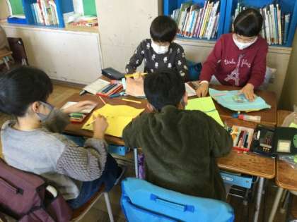 2年生の道具づくり、算数、図工の様子です。