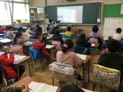 1校時、時刻の学習です。