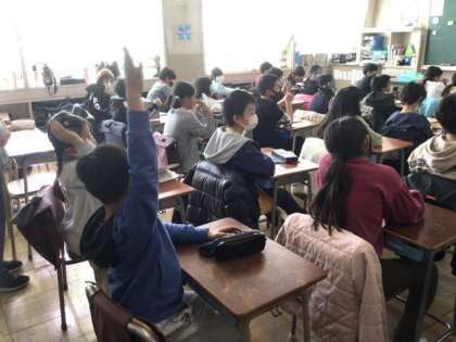「I see 〜」の文で表現しながらクイズ形式での出題に答えます。
