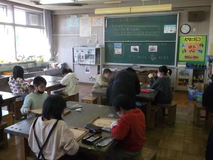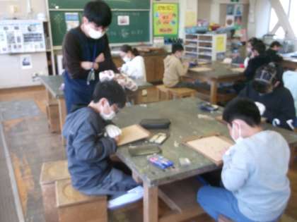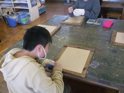 丸刀や三角刀を実際に使用し、できた線の特徴を見付けました。