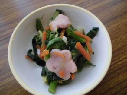 今日も、春色の献立になっています。春の和え物には、梅の花の形をした