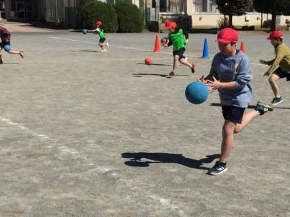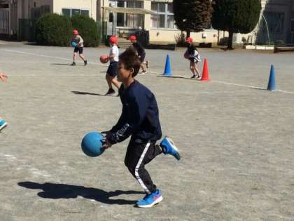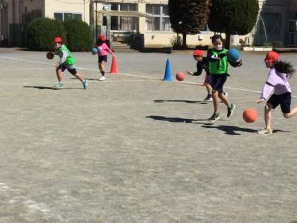 4校時、校庭でボール運動です。