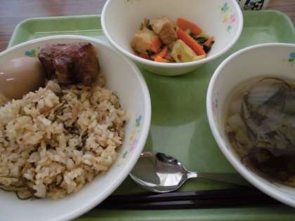 今日は「しし」、肉が入った混ぜご飯です。しょうがの効いた