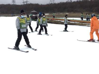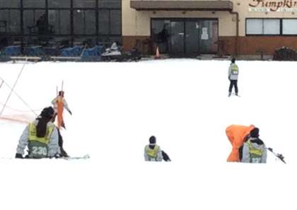 初級者は、まだリフトに乗らず、ゲレンデの下の方で練習です。