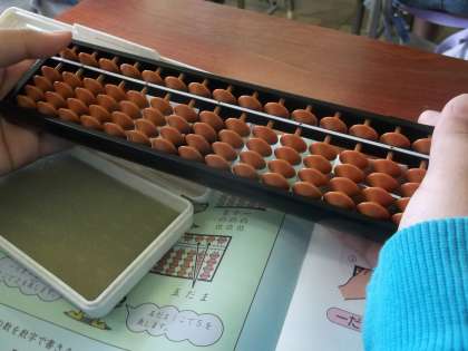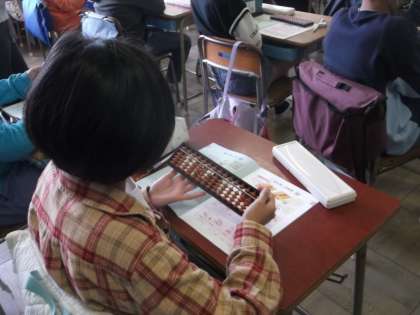 今日の算数は「そろばん」の学習です。