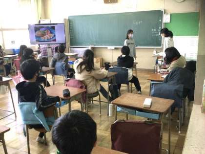 2校時、こちらクラスは、訪れたい場所を英語で発表しています。