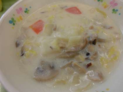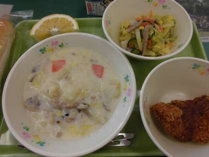 フィッシュバーガー・ベーコンサラダ・きのこシチュー