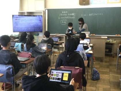 タブレットでスライドを作り、発表しました。