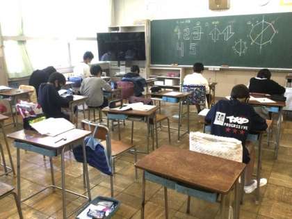 1校時、対称な図形の学習です。