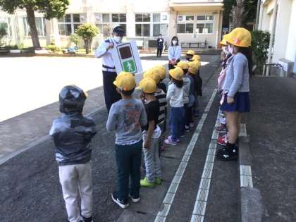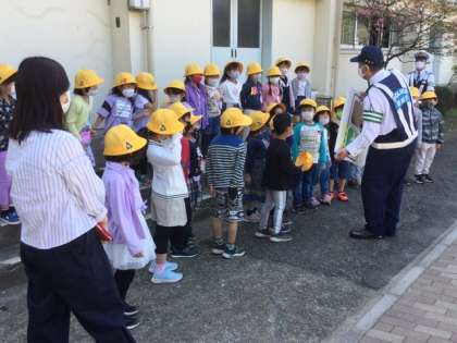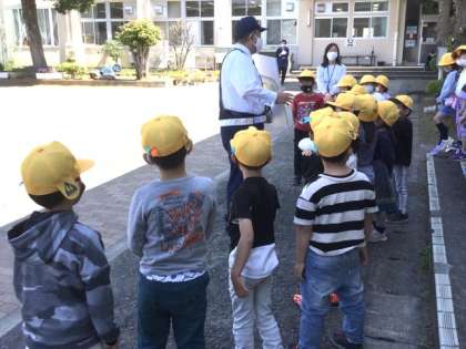 交通事故に遭わないように、しっかりと話を聞いています。