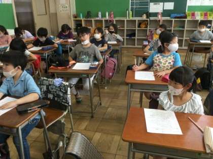 6校時、タブレットを自宅に持ち帰るにあたってのルールをかくにんしています。