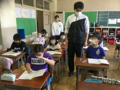 中学部の生徒や先生が、小学部の授業や行事に関わっています。