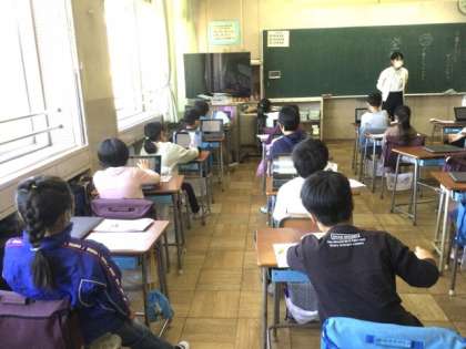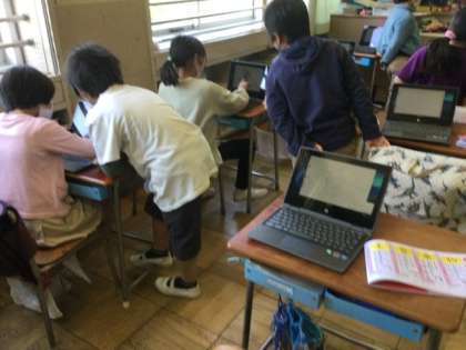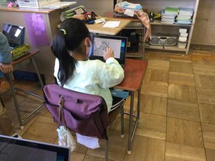 1校時、タブレットを使って、書き順テストをしていました。