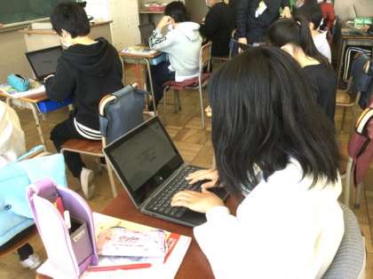 今日は、学んだことをタブレットを使ってまとめていました。