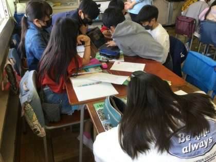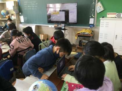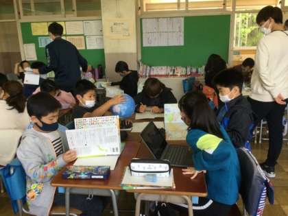 グループで、日本の位置を表す文を作っています。