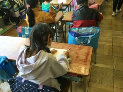 2校時、4月の生活目標の達成度を振り返ります。