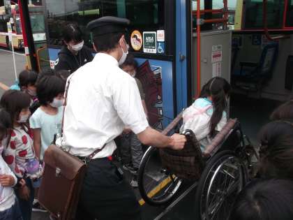 車いすを使用されている方がどのように乗るのかも学びました。
