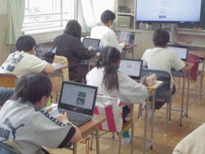 タブレットを活用して、平和について真剣に調べたり、プレゼン資料としてまとめたりしていました。