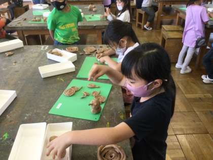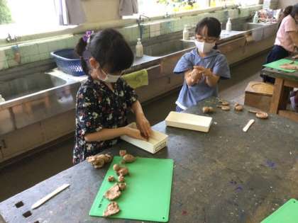 4校時、粘土で色々な物を作っていました。