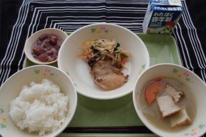 今日の給食は、和食の基本「一汁三菜」で、バランスのよい