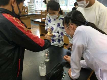 理科や生活科では、実験やミニトマト栽培に取り組んでいます。
