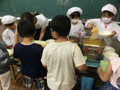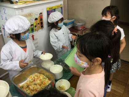 給食当番の配膳も上手にできています。