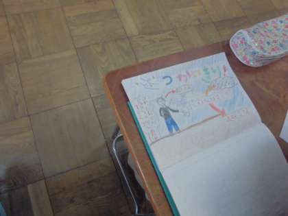 社会の授業では、ごみの捨て方についてのポスターを考えました。下書きしたものをこれから画用紙に清書します。