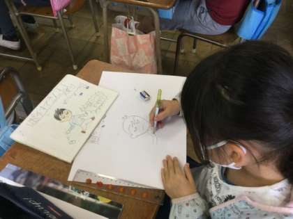 4年生のポスターづくり、2年生の漢字の学習、5年生の社会です