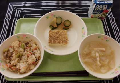 給食では、「ごま」を付けていただきます。裏がない、つまり