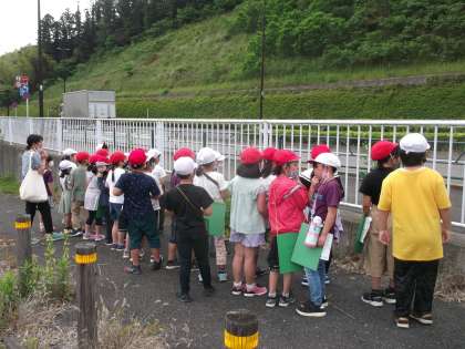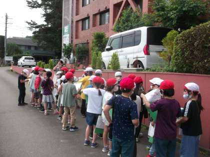 新滝山街道沿いまで歩くと、偕楽園という老人福祉施設がありました。3学期に交流会をするよと担任に教えてもらいました。どの子もしっかりとメモをとり、話を聞いていました。