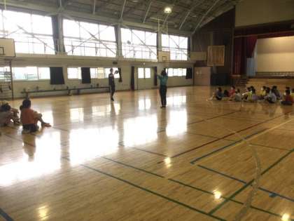 1校時、体育館にいます。