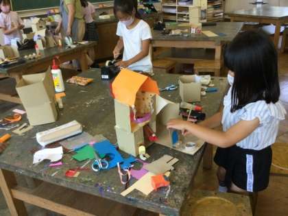 2校時、「豆太のいえ」を作っています。