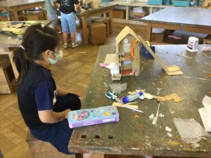 ダンボールやひもなど、色々なものを使って作っています。