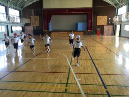 シャトルランの練習をしています。