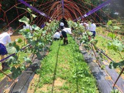 地域の方のご指導のもと、きゅうり、なす、トマトを栽培しています。