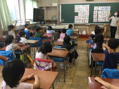 1校時、ひらがなの学習をしていました。