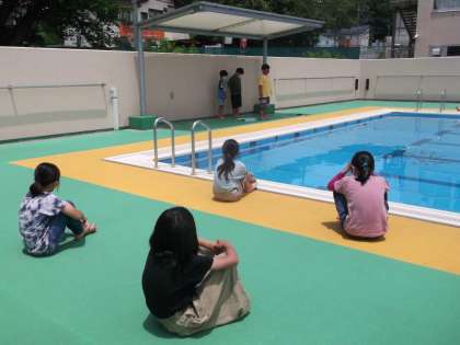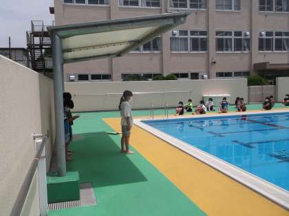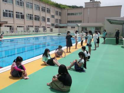 プール開きでは、代表児童の話や先生から水泳指導の注意点を聞きました。また、笛の意味やバディの取り方も学びました。早く入りたいですね。