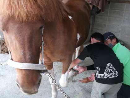 子供たちはグループに分かれ、自分たちが乗るポニーのお世話をしました。