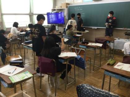 4校時、釜石町の町づくりについて学習しています。
