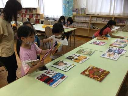 滝山虹の会さんからいただいた本に、子どもたちは興味津々です。