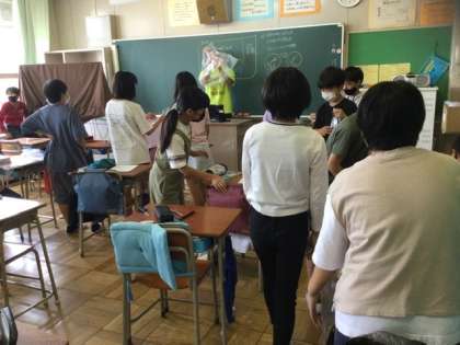 2校時、実験の準備をしていました。