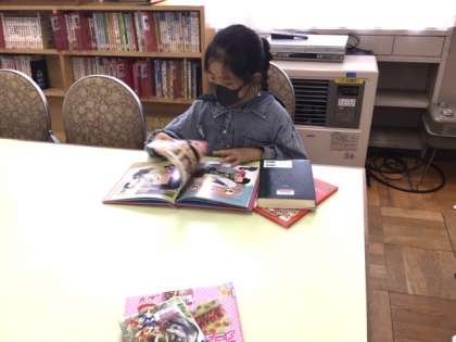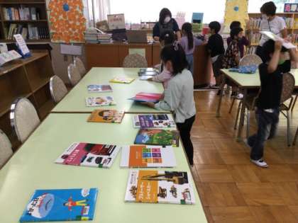 4校時、図書室にいます。