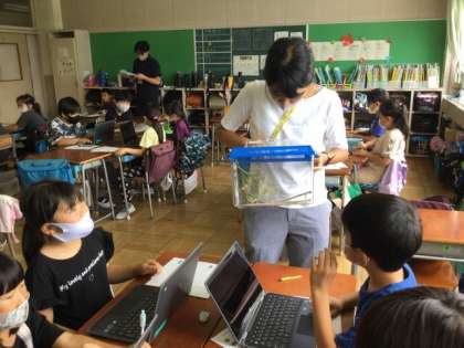 3校時、蝶の観察をしようと言う授業です。