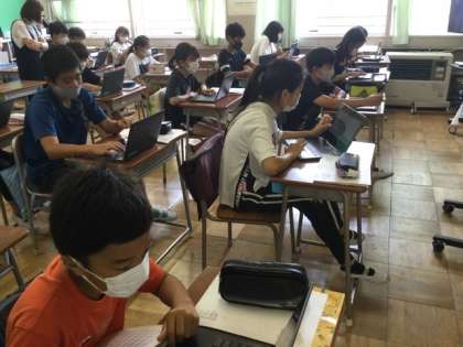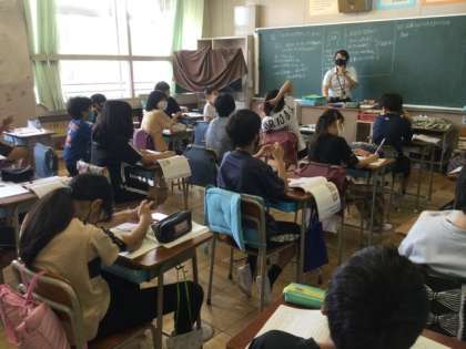 グループリーダーを頼まれた登場人物の心の変化について、意見を発表しています。