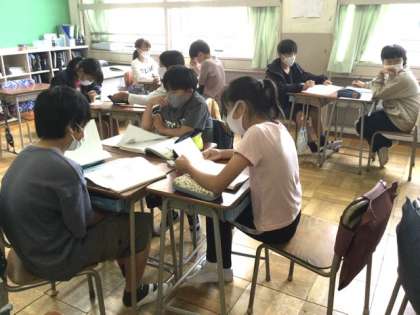 グループで、グラフを読み取っていました。