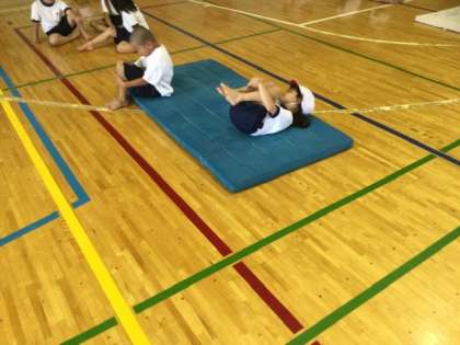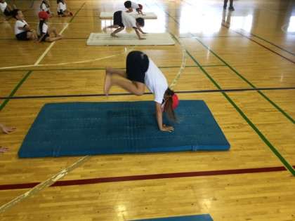 3校時、体育館でマット運動です。