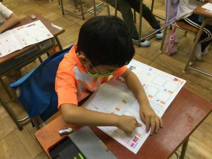 1校時、ひらがなの練習です。