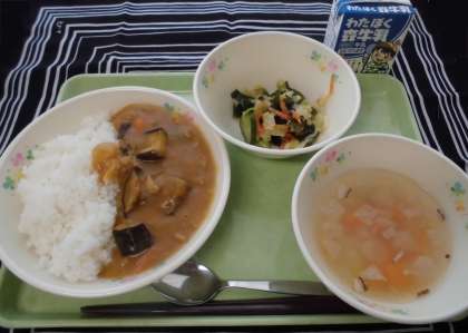 今日の夏野菜は、なすとかぼちゃです。八王子産の夏野菜を