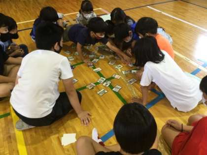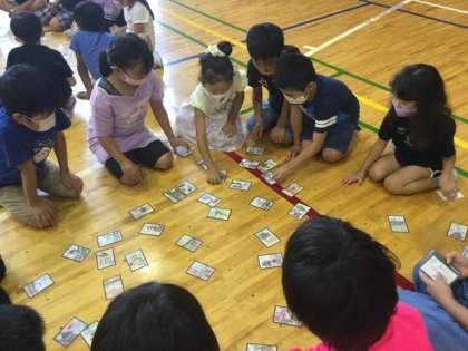 今日はゲーム集会でしたが、雨のためかるた大会に変更です。