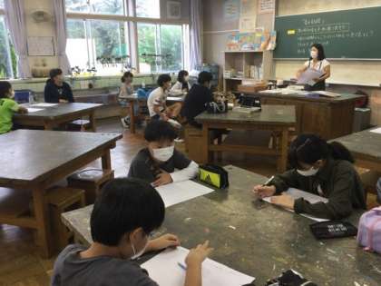 1校時、「音のする絵」と言う課題です。